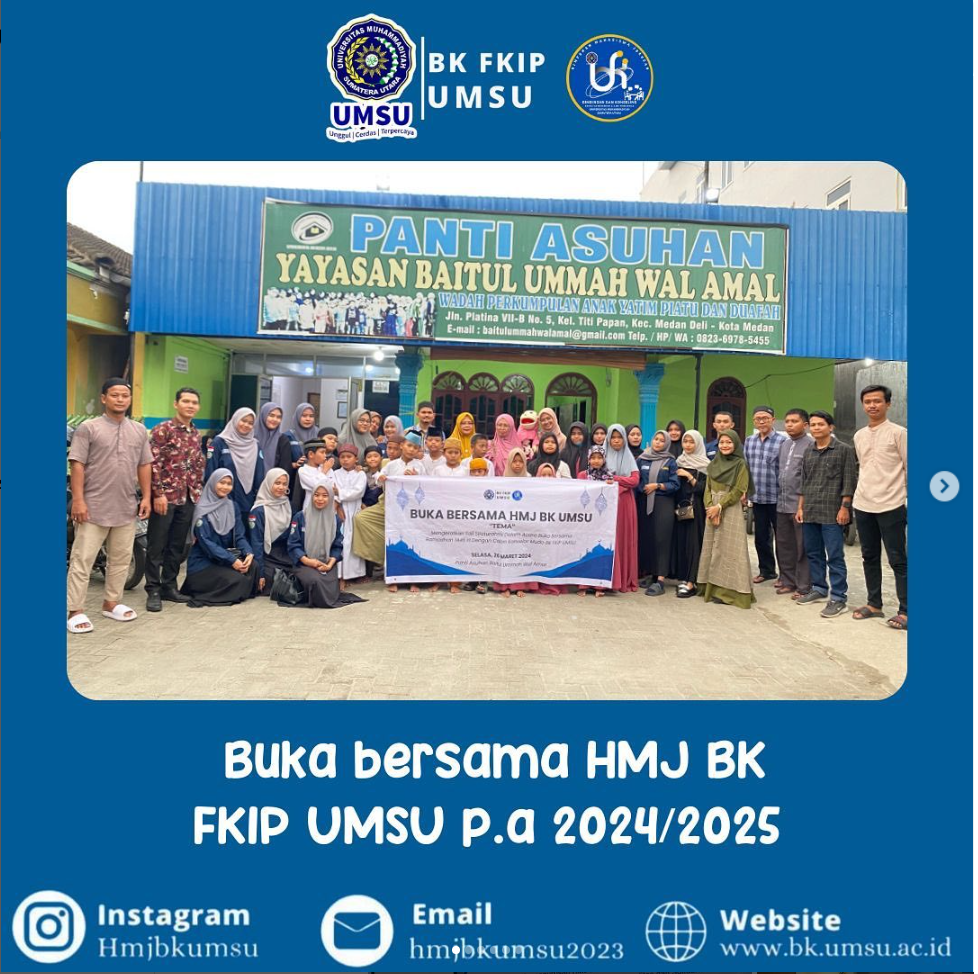 Himpunan Mahasiswa Jurusan (HMJ) Bimbingan dan Konseling (BK) Universitas Muhammadiyah Sumatera Utara (UMSU) membagikan puluhan sembako kepada Panti Asuhan Baitul Ummah Wal Amal yang terletak di Jl. Platina Kecamatan Medan Deli, Selasa (26/03/2024).